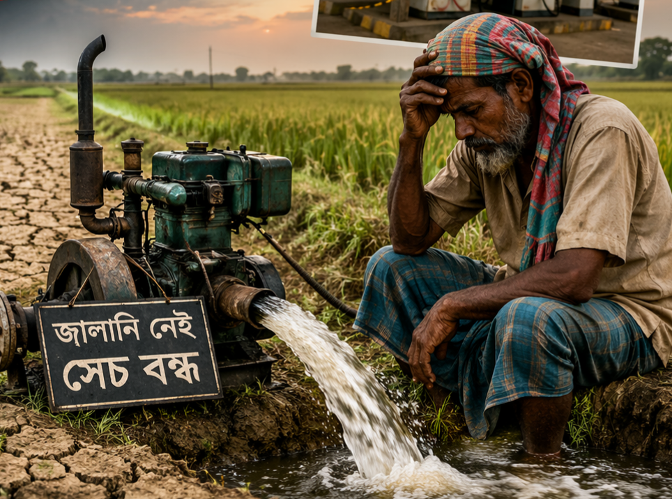 "জমিতে পানি দেওয়া খুব জরুরি, কিন্তু পাম্প চালানোর তেল নেই। বাজারে গেলে বলা হচ্ছে তেল শেষ। এভাবে চললে ফসল ঘরে তোলা অসম্ভব হয়ে পড়বে। ডিলারদের দাবি, ডিপো থেকে চাহিদার তুলনায় অনেক কম তেল বরাদ্দ দেওয়া হচ্ছে। যোগাযোগ ব্যবস্থার সীমাবদ্ধতা ও লজিস্টিক সমস্যার কারণে সময়মতো তেল পৌঁছাচ্ছে না। এই সংকটের সুযোগ নিয়ে কিছু অসাধু ব্যবসায়ী নির্ধারিত দামের চেয়ে বেশি দামে তেল বিক্রি করছেন বলে অভিযোগ উঠেছে। পাবনা জেলা কৃষি সম্প্রসারণ অধিদপ্তরের তথ্যমতে, এই সময়ে সেচ বিঘ্নিত হলে ধানের ফলন উল্লেখযোগ্য হারে কমে যেতে পারে। এছাড়া সবজি চাষেও এর নেতিবাচক প্রভাব পড়ার আশঙ্কা রয়েছে। ডিজেল সংকটের কারণে অনেক কৃষক বাধ্য হয়ে পাওয়ার টিলার বা ট্রাক্টর চালাতে পারছেন না, ফলে জমি প্রস্তুত করার কাজও থমকে আছে।